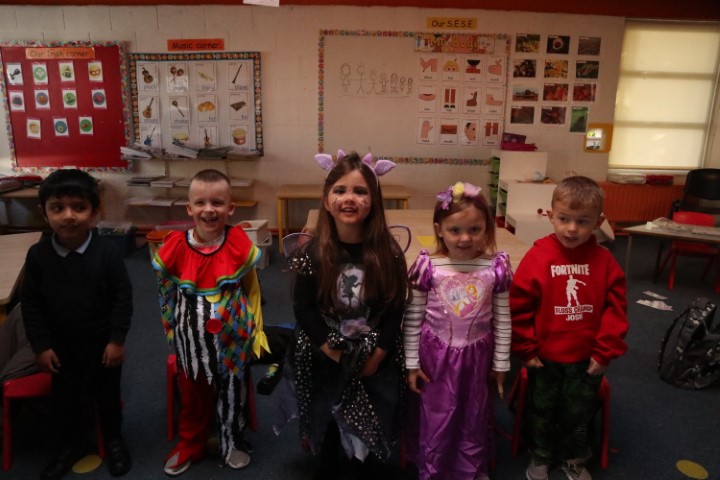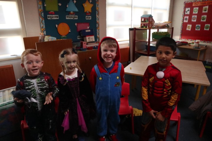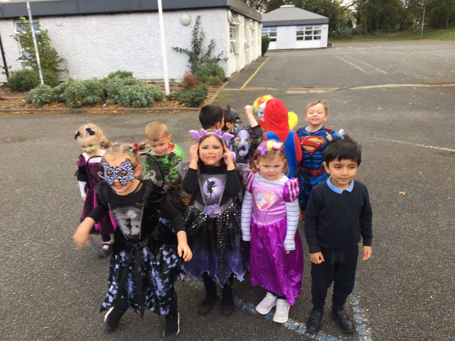 Today the children made a special effort and came to school dressed up. We had zombies, witches, devils, skeletons, pirates, supermen, spidermen, iron men, batmen, firemen, police, bees, ladybirds, ninjas and lots more……